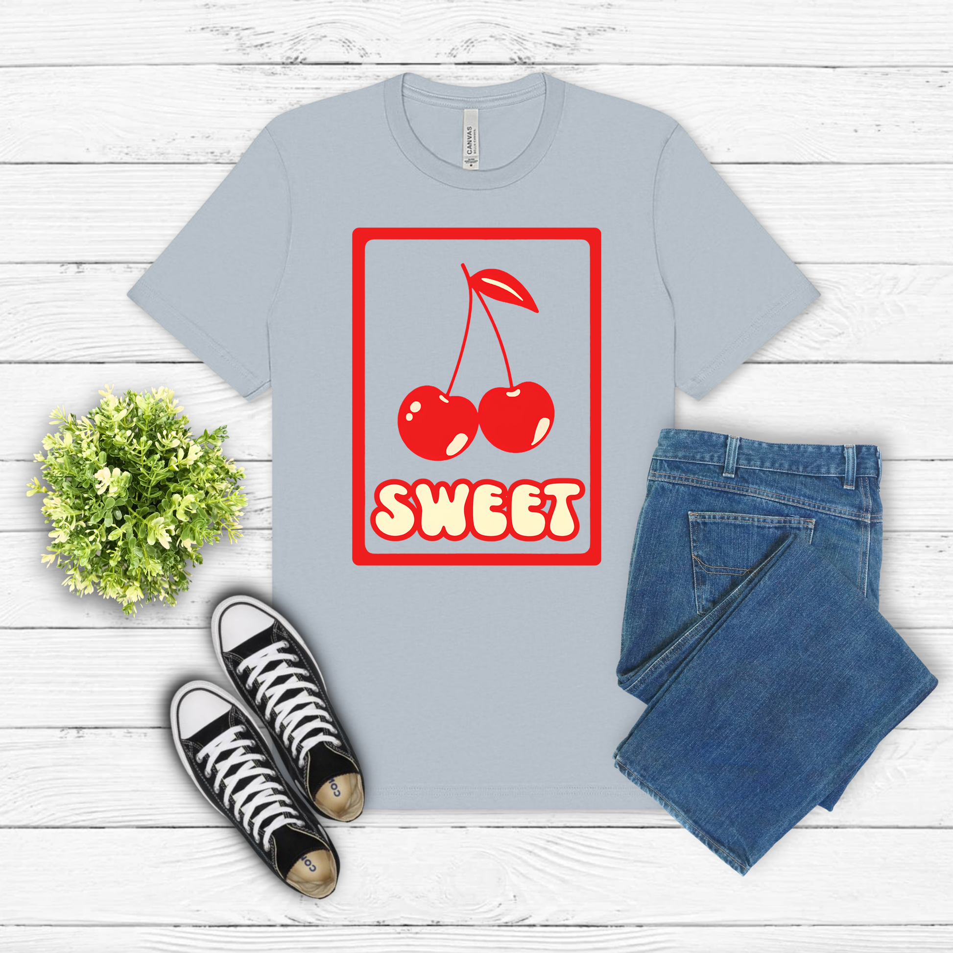 Say hello to your new favorite summer tee! This “Sweet” cherry graphic shirt brings all the fun, fruity, and vintage vibes to your warm-weather wardrobe. With bold red cherries and chunky retro lettering, this design is perfect for sunny days, summer adventures, and anyone with a playful side.