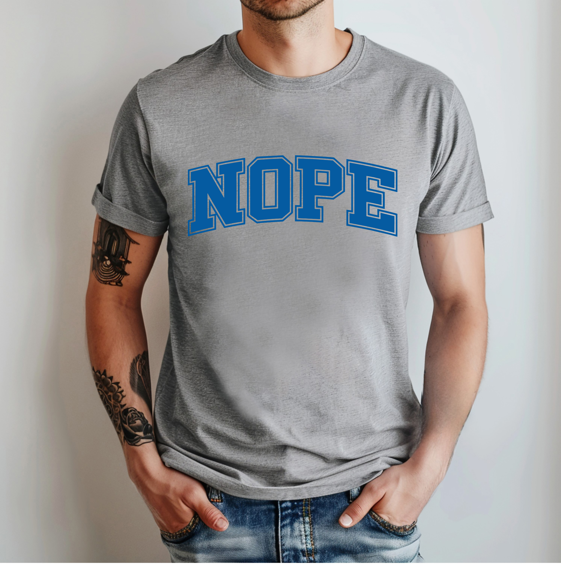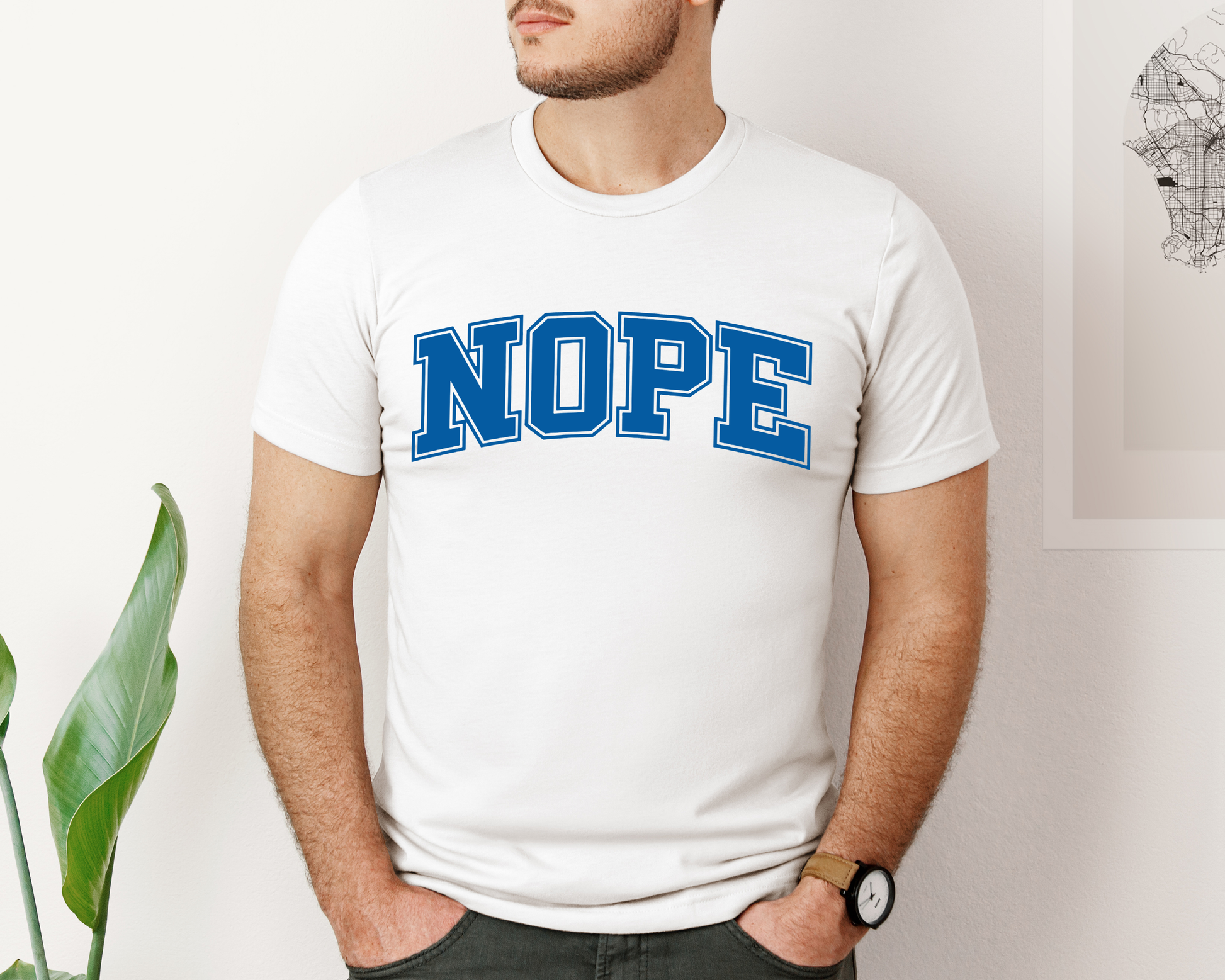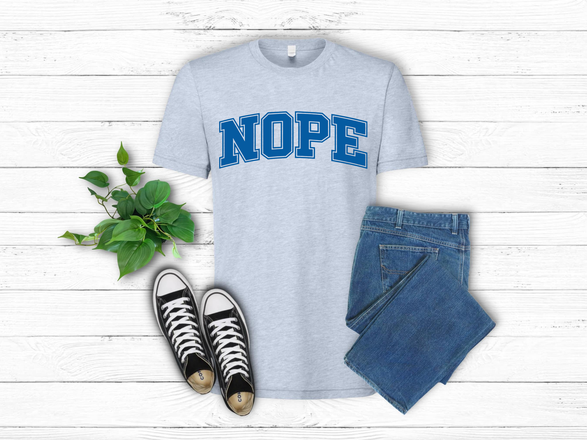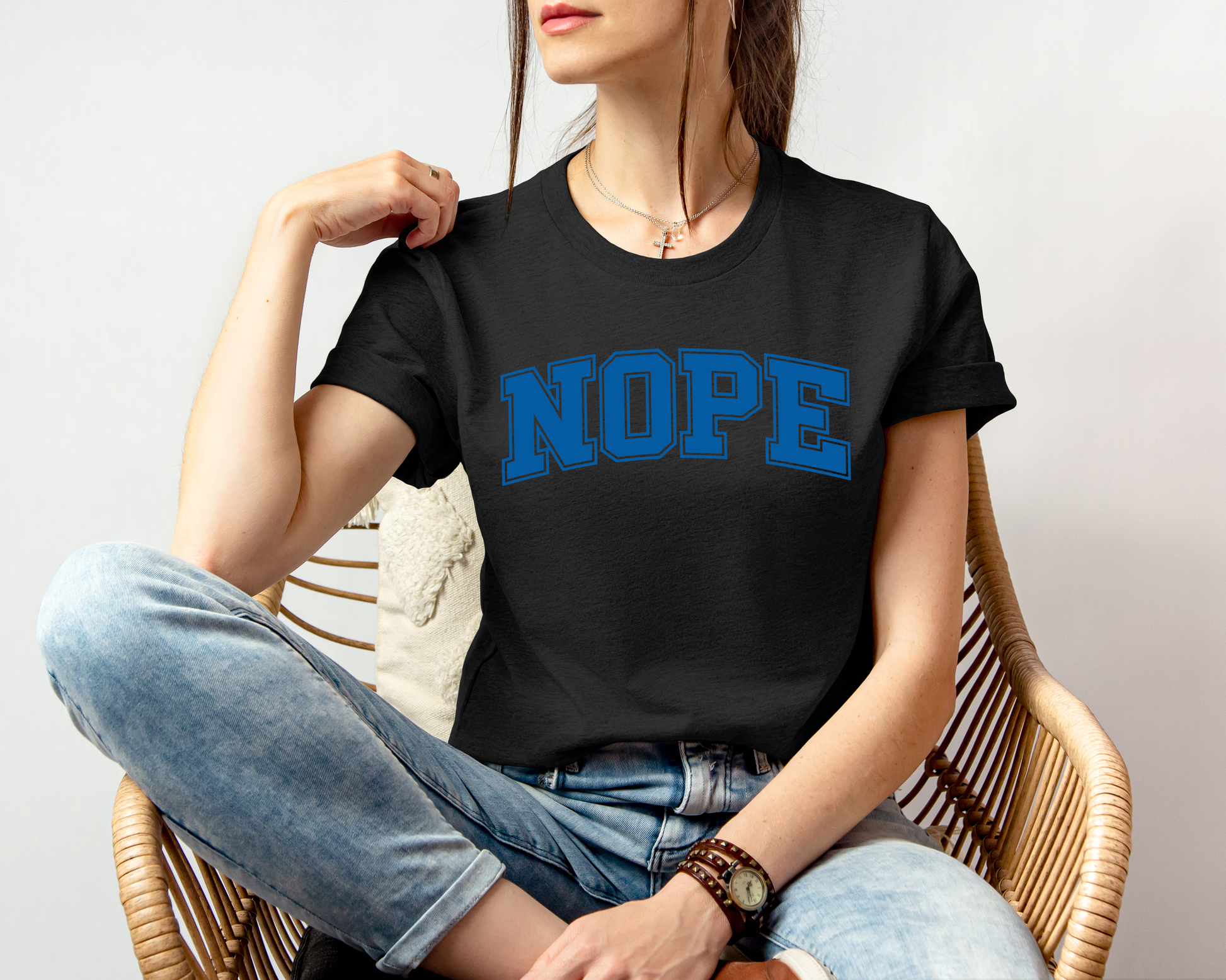 NOPE T-Shirt – Funny Collegiate Style Shirt, Sarcastic Graphic Tee, NOPE University Shirt, Introvert Humor, Anti-Social Gift Idea