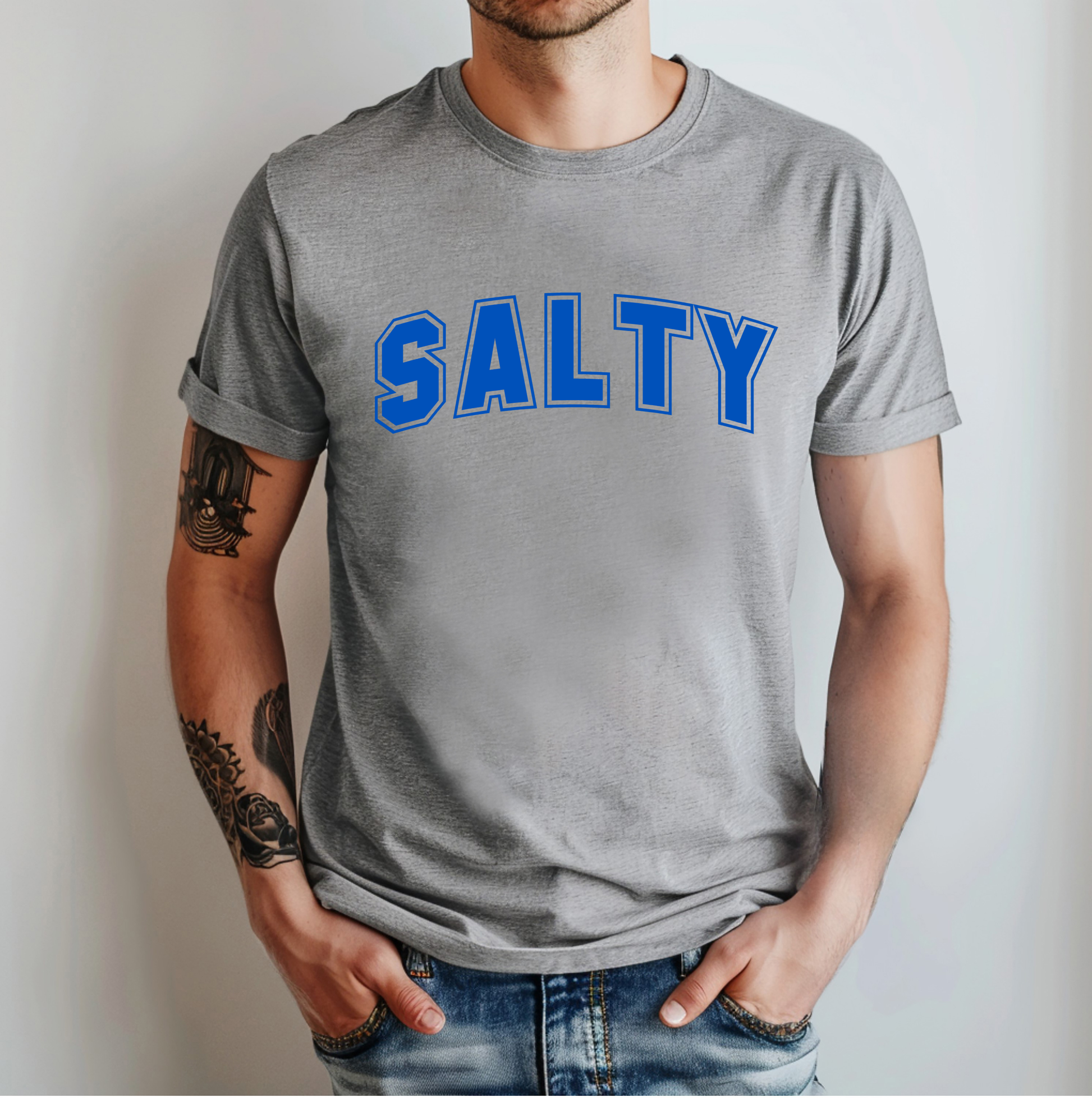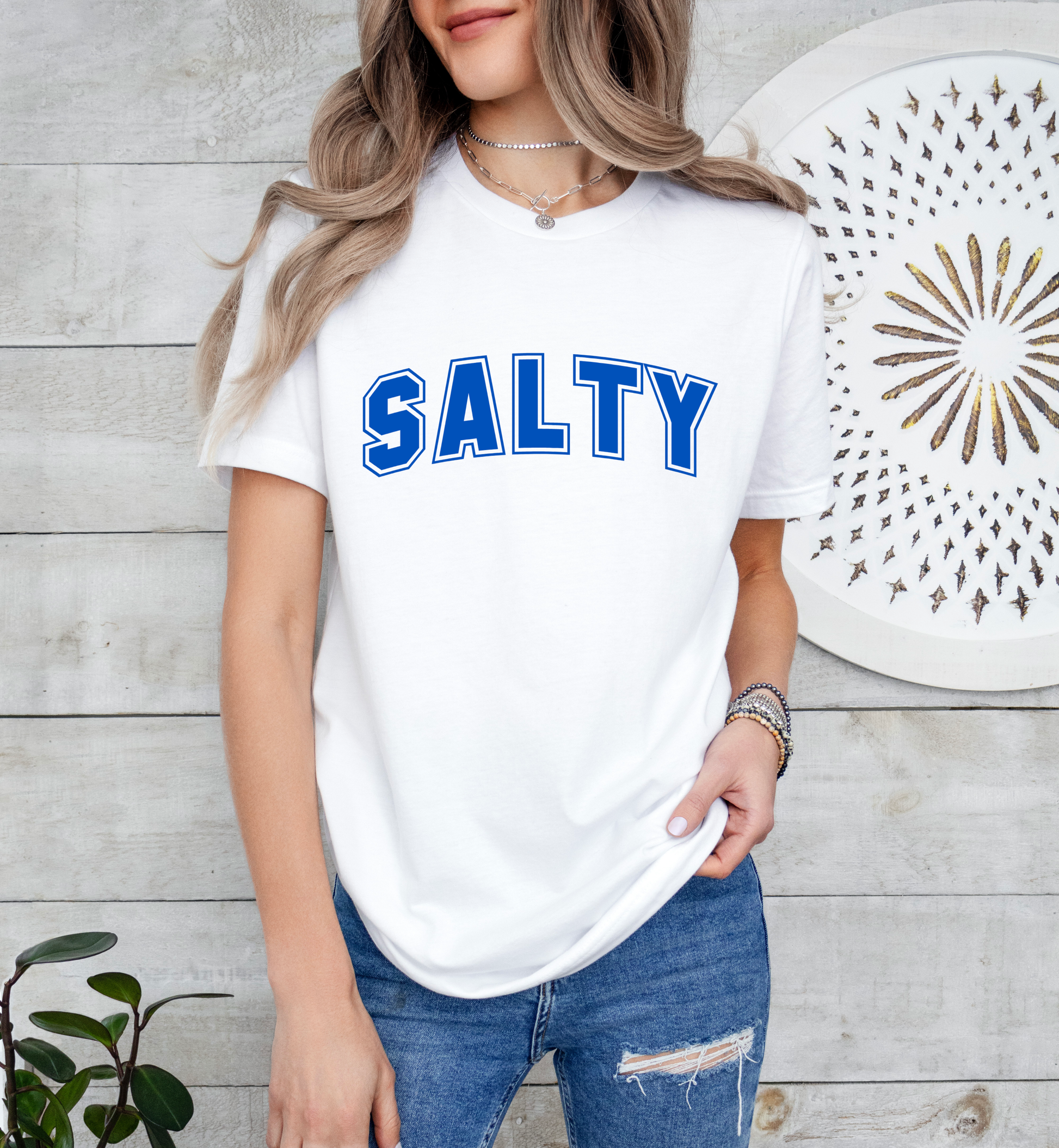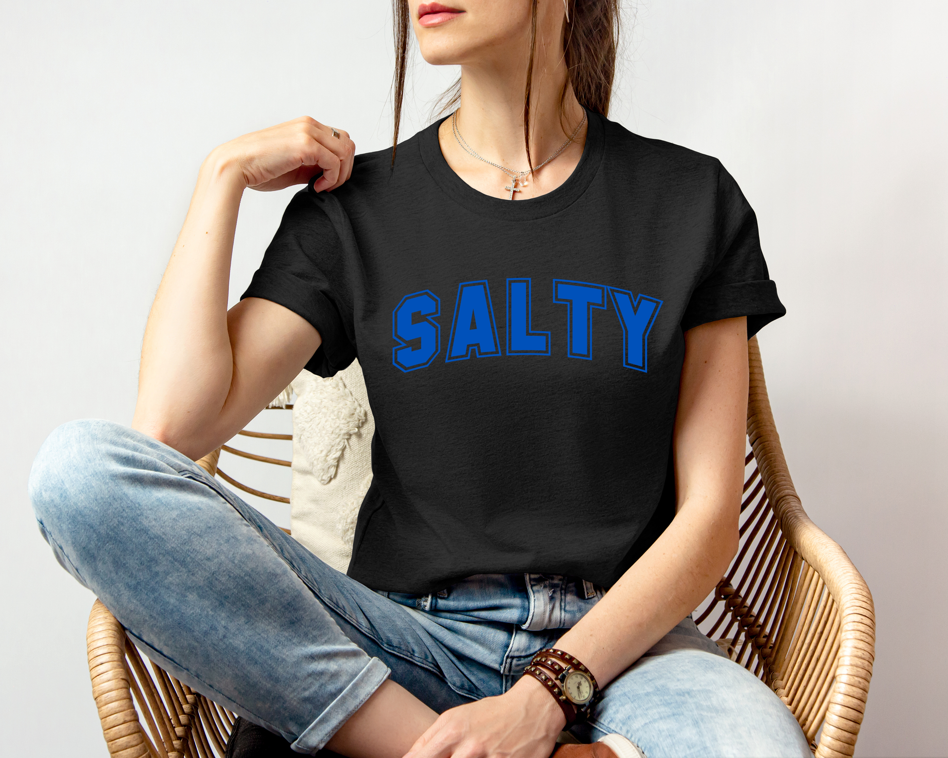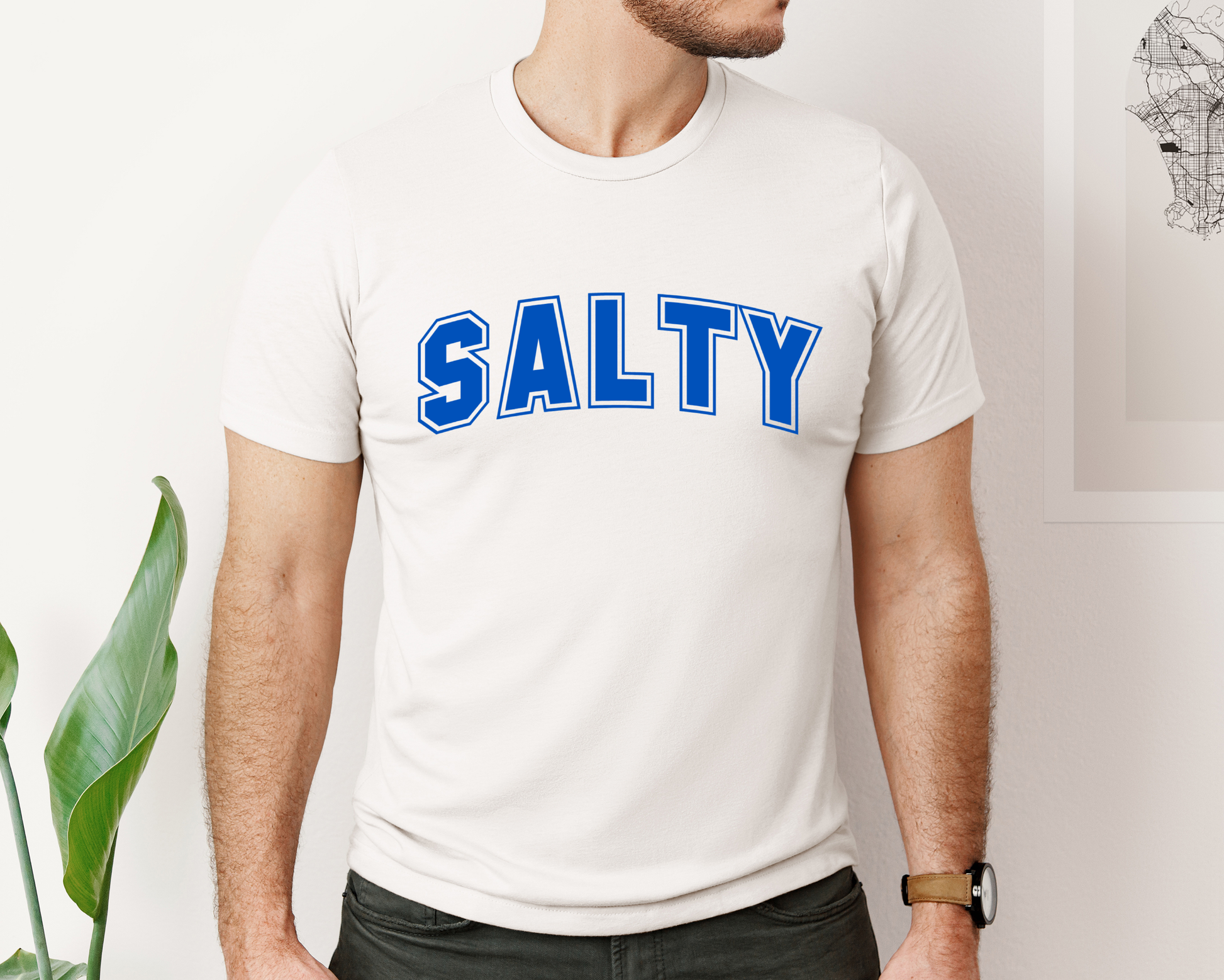 SALTY T-Shirt – Funny Collegiate Graphic Tee, Sarcastic Shirt, NOPE University Collection