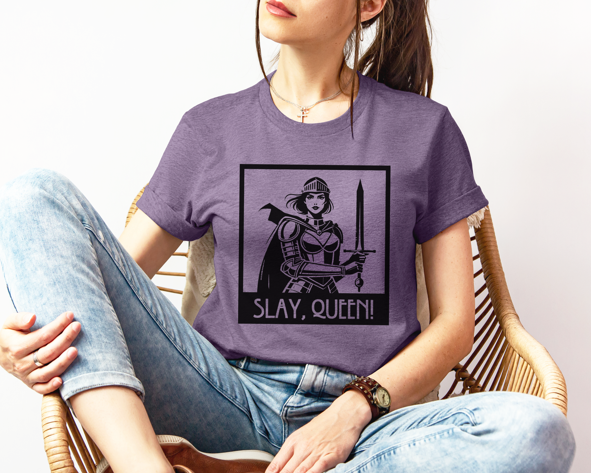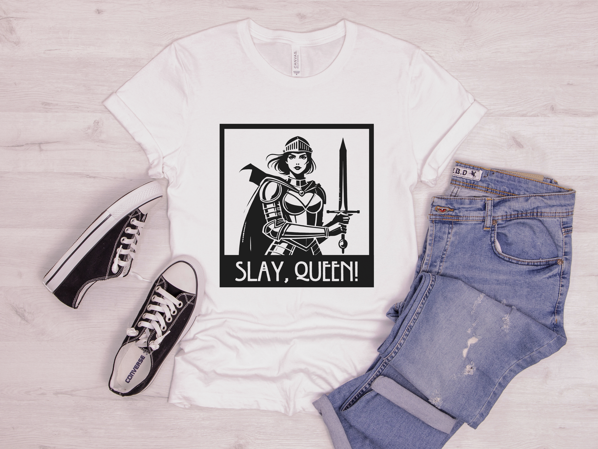 Slay Queen T-Shirt - Female Knight Graphic Tee, Feminist Shirt, Fantasy Graphic Tee