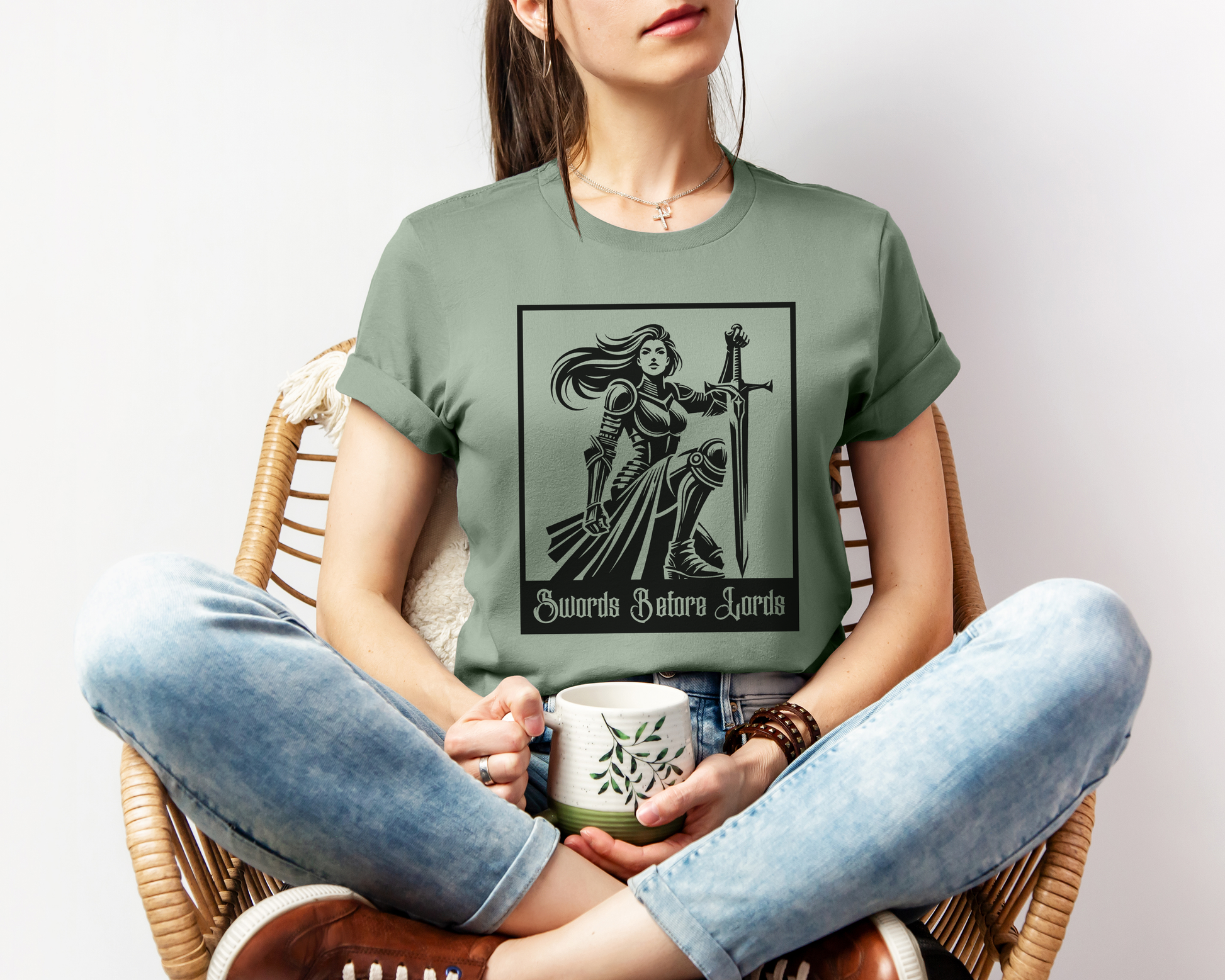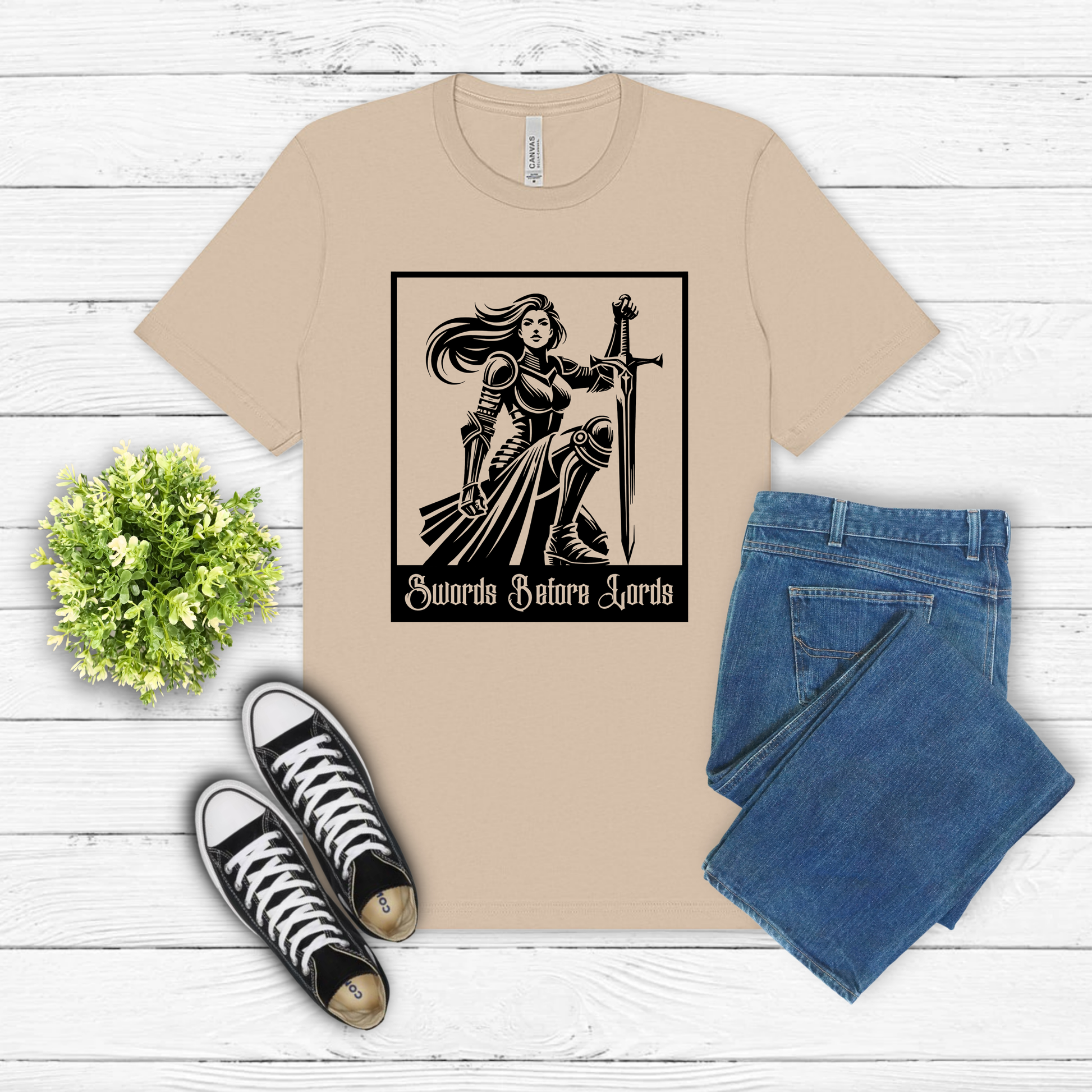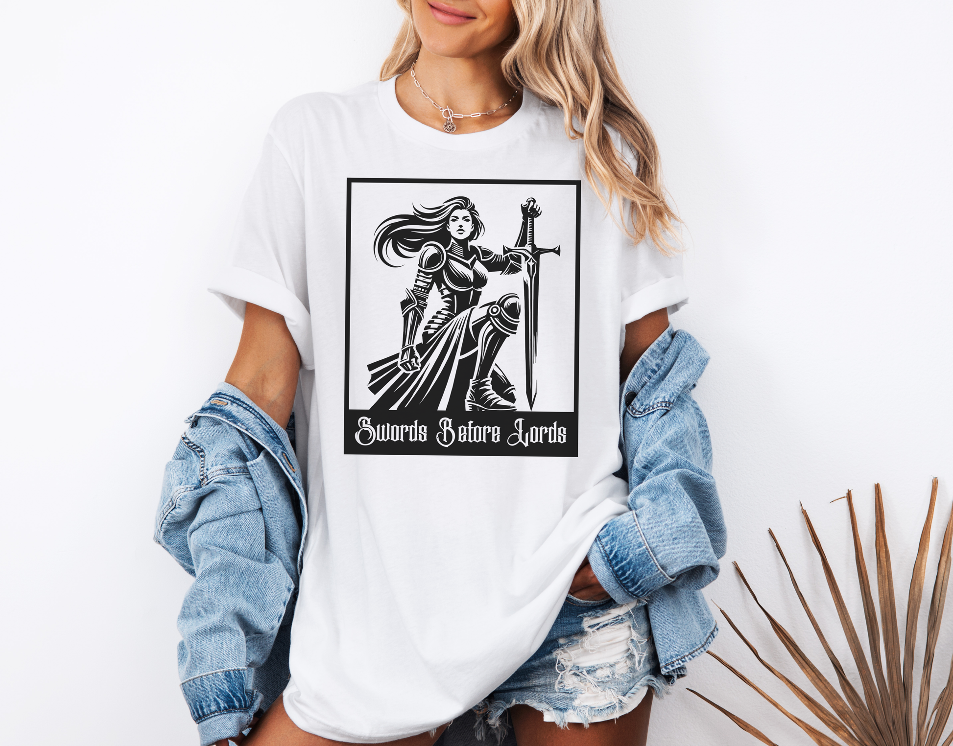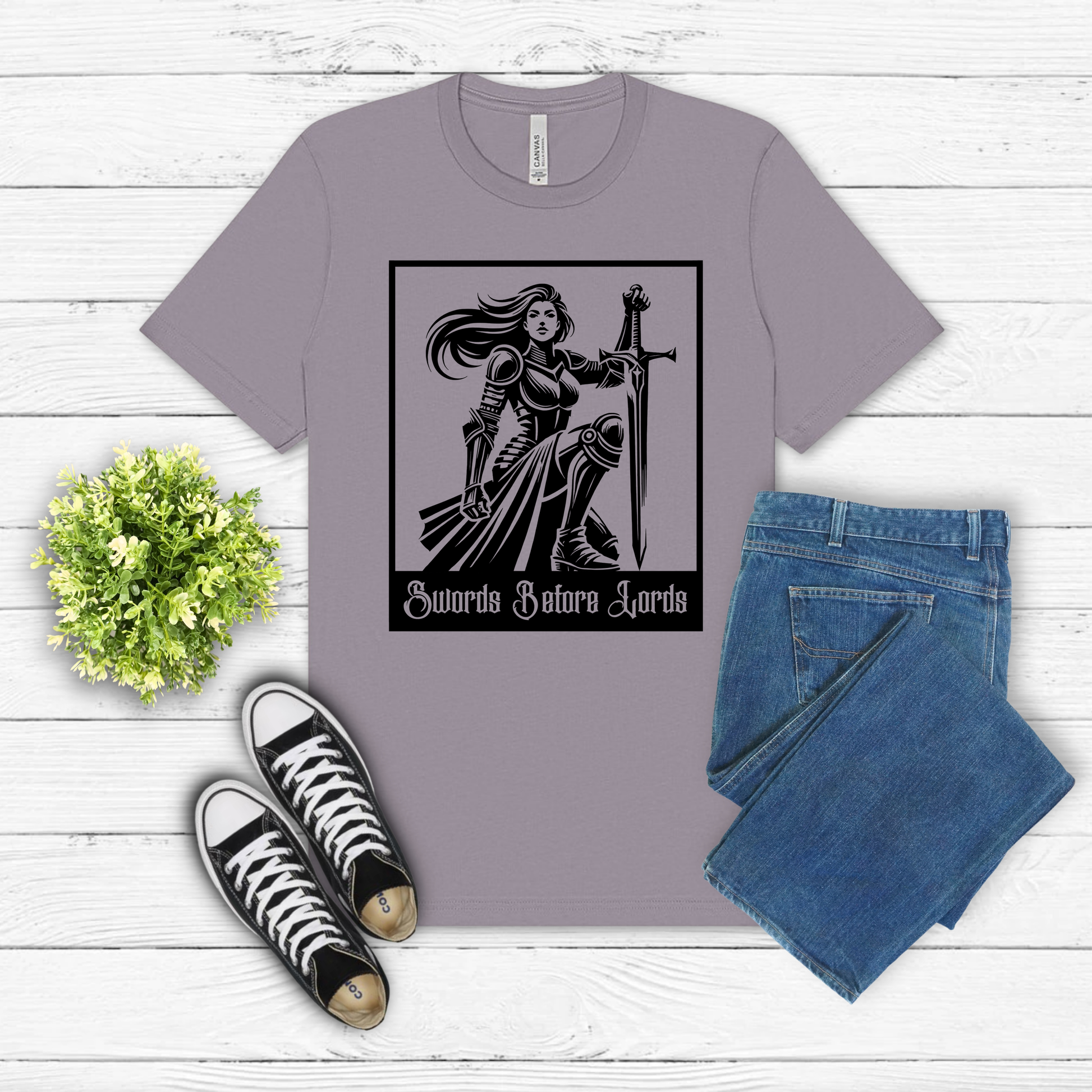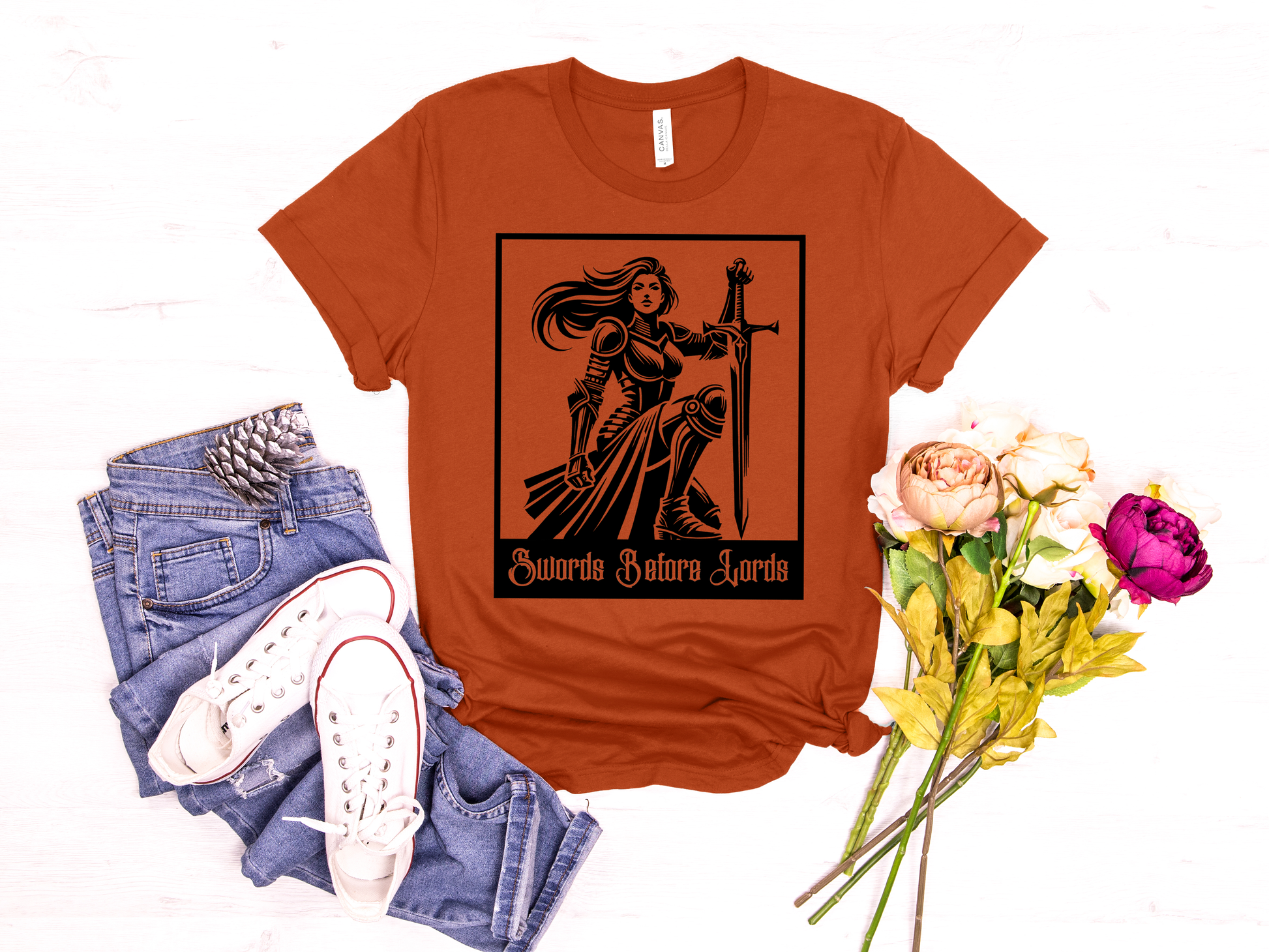 Swords Before Lords T-Shirt, Female Knight Tee, Medieval Aesthestic