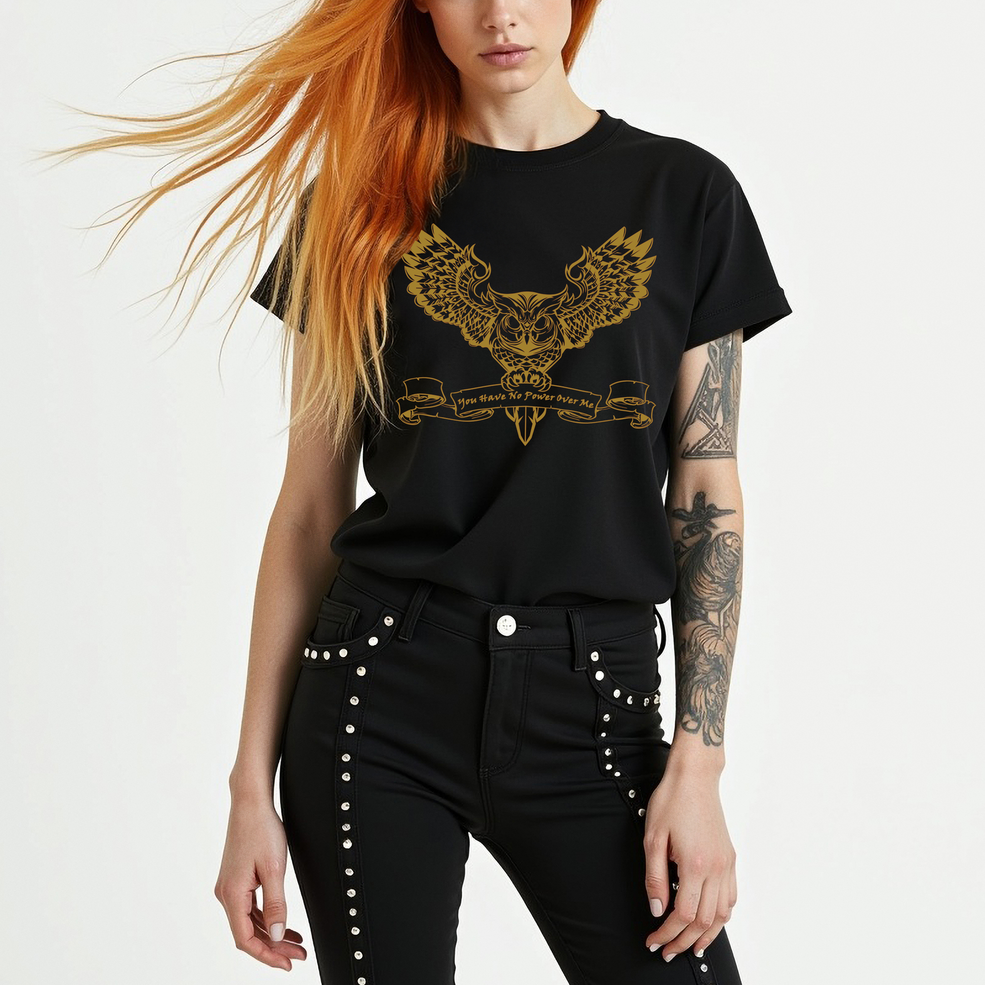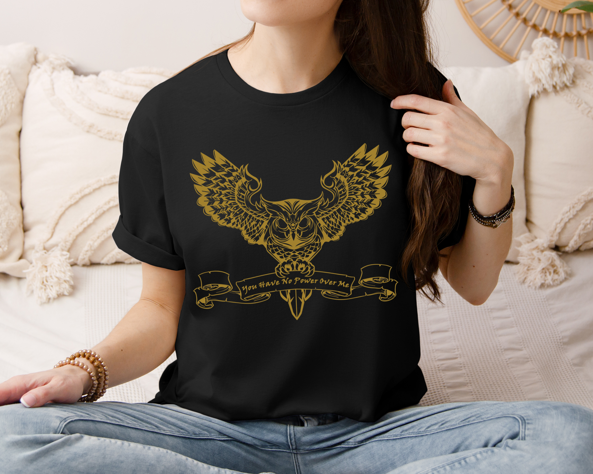 Magic, mystery, and inner strength—this “You Have No Power Over Me” t-shirt captures the essence of standing strong in the face of illusion. Featuring a detailed illustration of an owl carrying a flowing banner, this design is inspired by classic 80s fantasy films, mystical adventures, and heroines who discover their own power. Whether you love enchanted creatures, retro fantasy aesthetics, or simply a reminder of your own strength, this shirt is made for you.